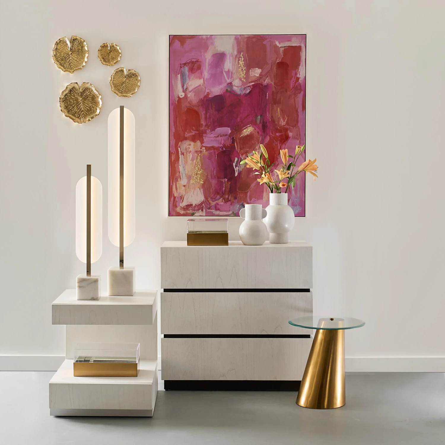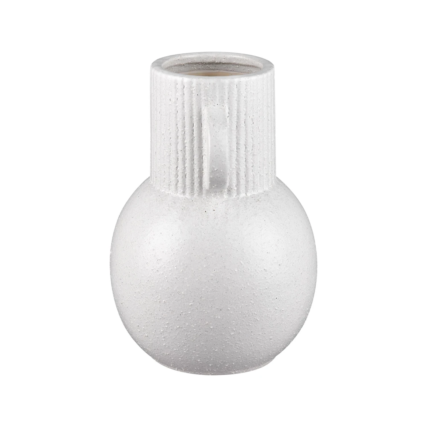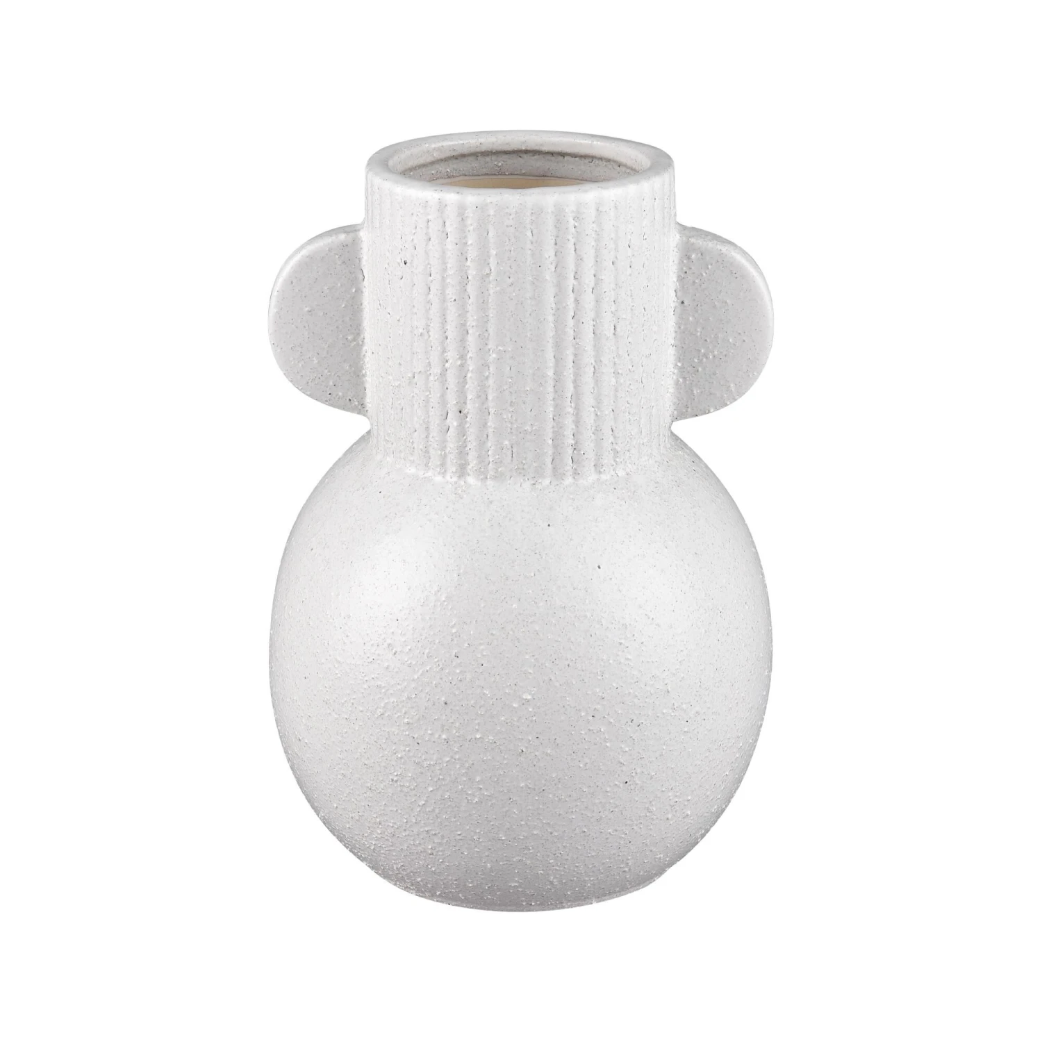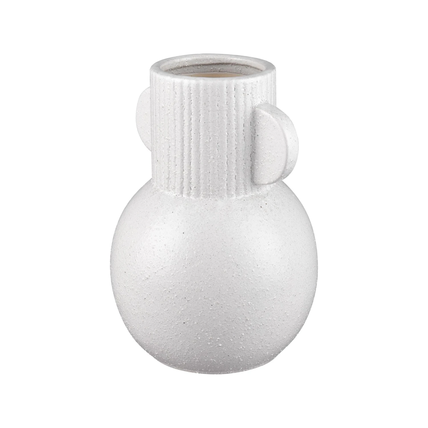 The Acis Vase is defined by a central rounded body made from matte white earthenware. The simple sculptural silhouette of this vase and the serene color makes it ideal for a coastal or Scandinavian aesthetic.