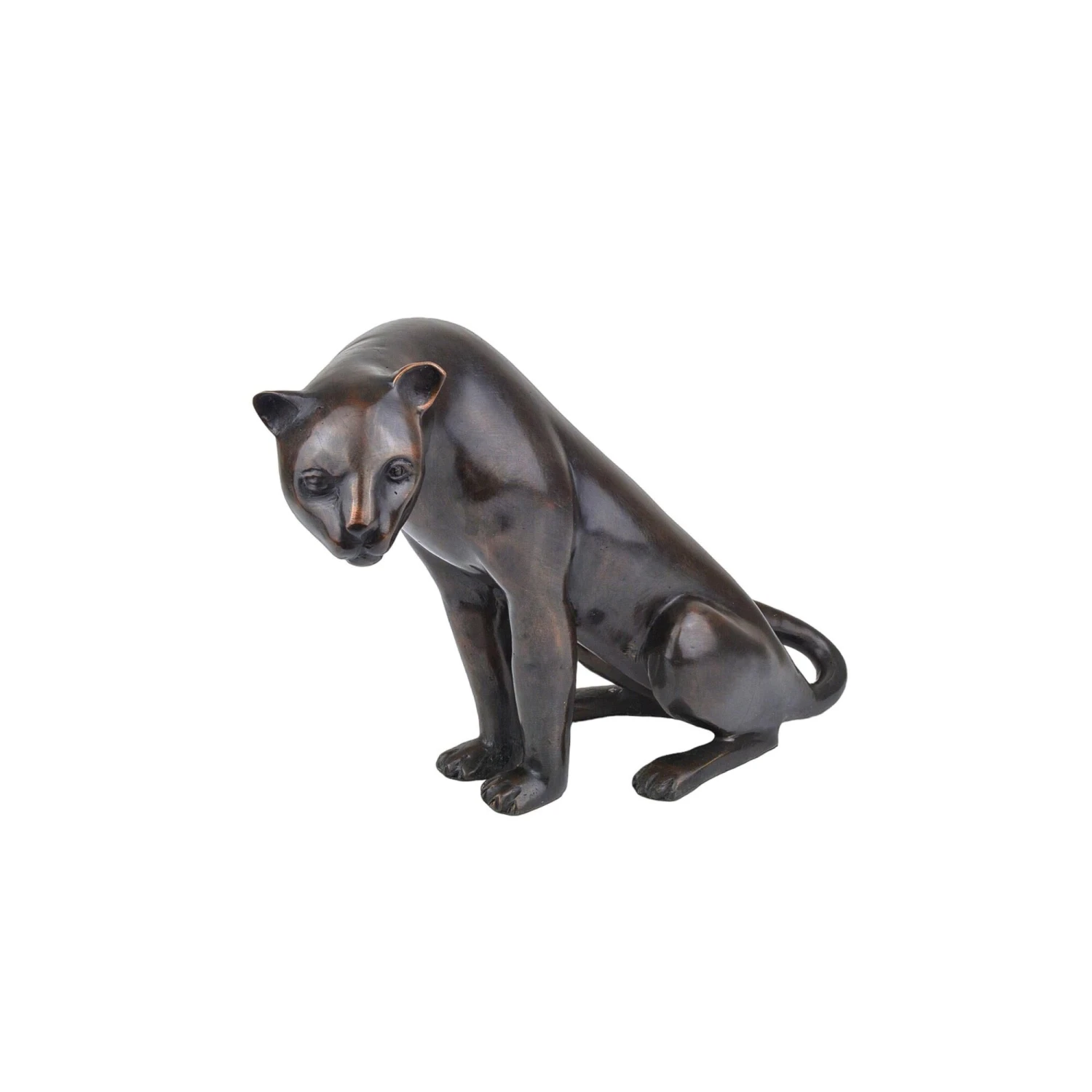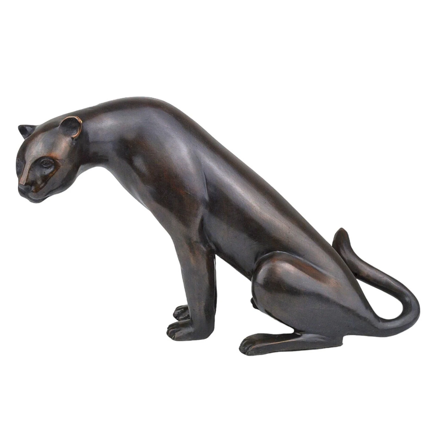 The Cheetah Bronze sculpture is made from a lost-wax technique when boiling bronze is poured into a mold covering an original wax sculpture that melts away. Once set, there is a very long process of refining the bronze to give it patina. This is among our bronze art pieces that references nature and will become a whimsical element in a space.