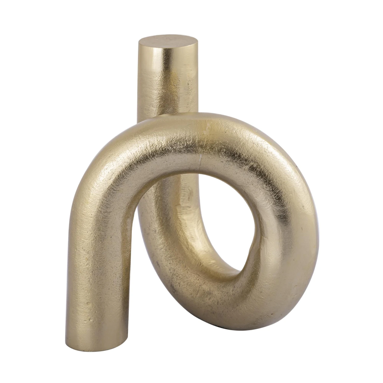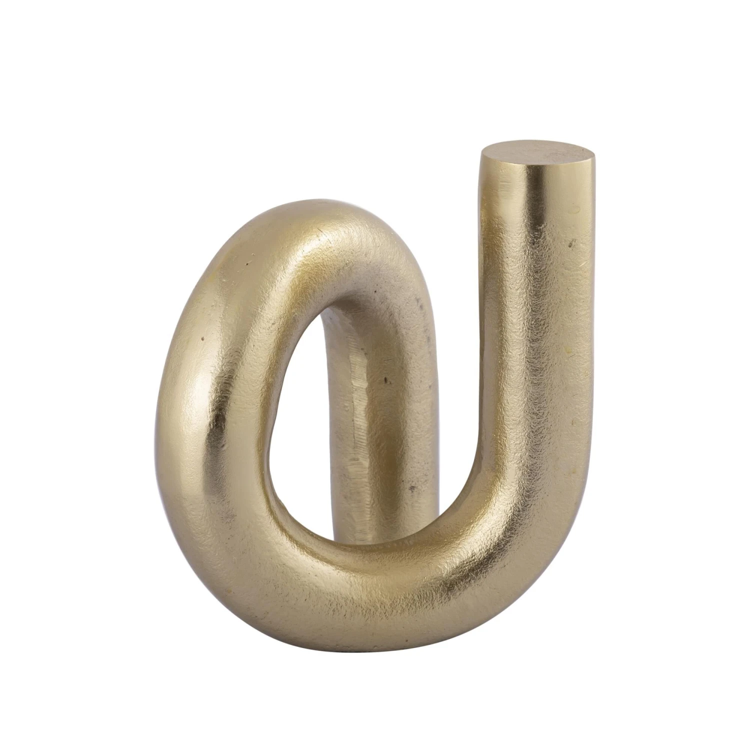 The Contour Sculpture is a playful metal tube with an aged brass finish. This neotenic, midcentury inspired sculpture bends over on itself, and can be displayed in a variety of orientations on a tabletop or bookshelf.