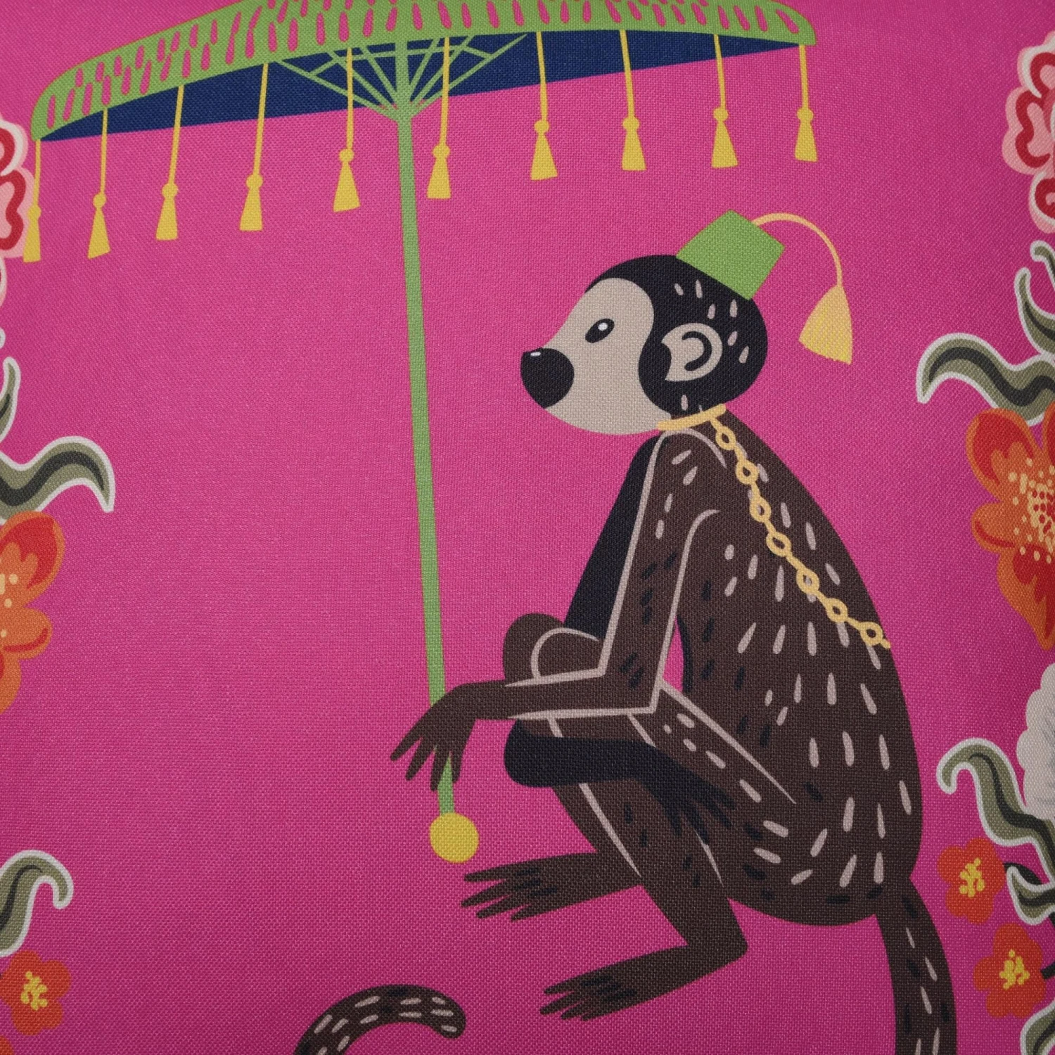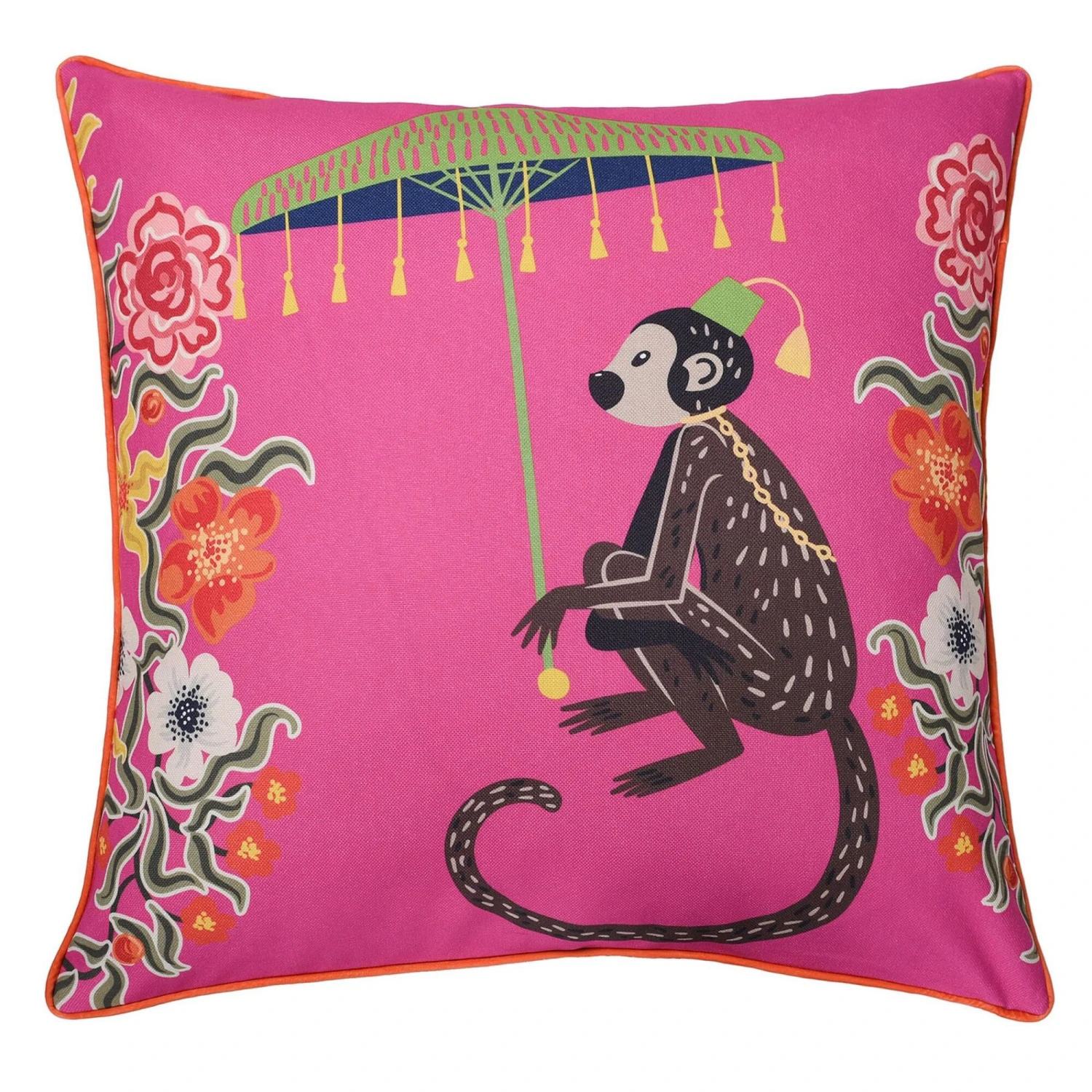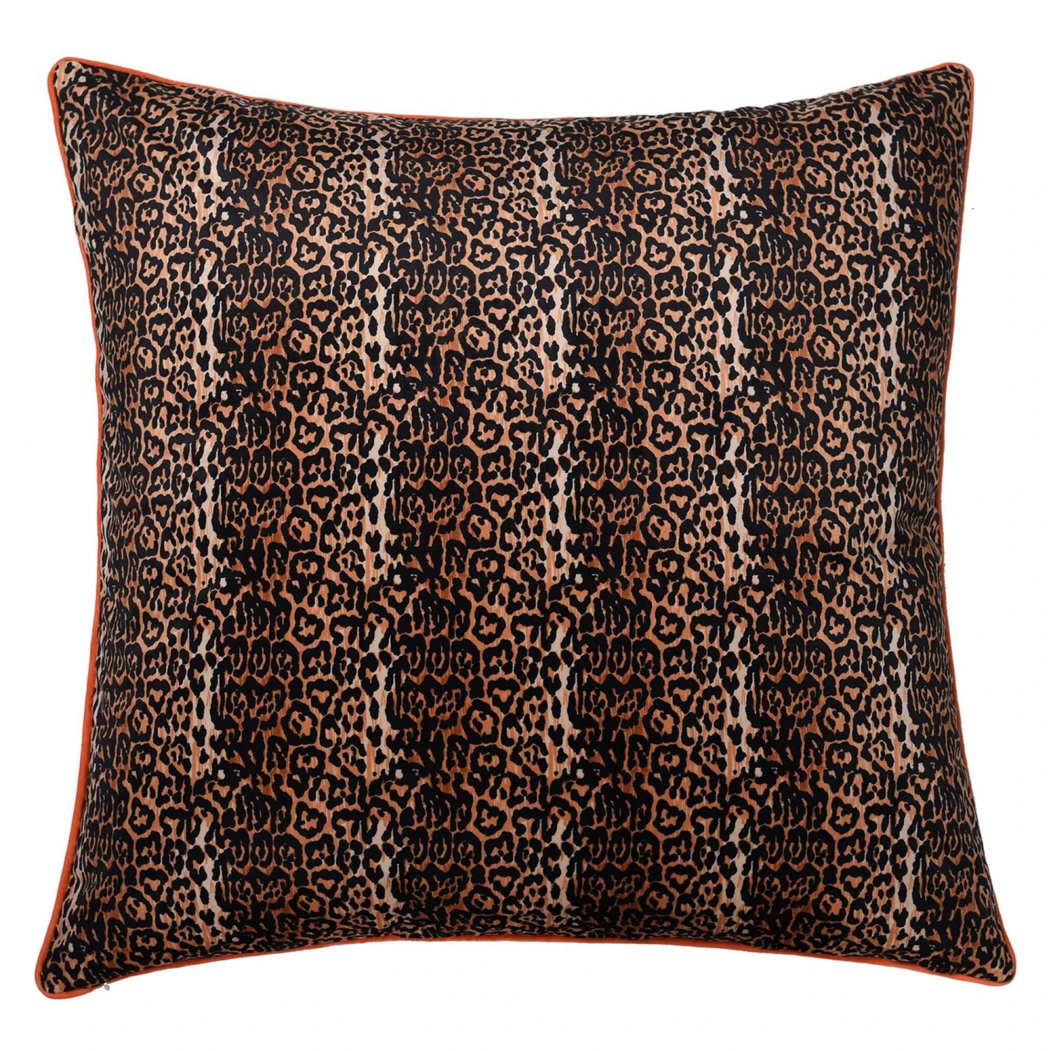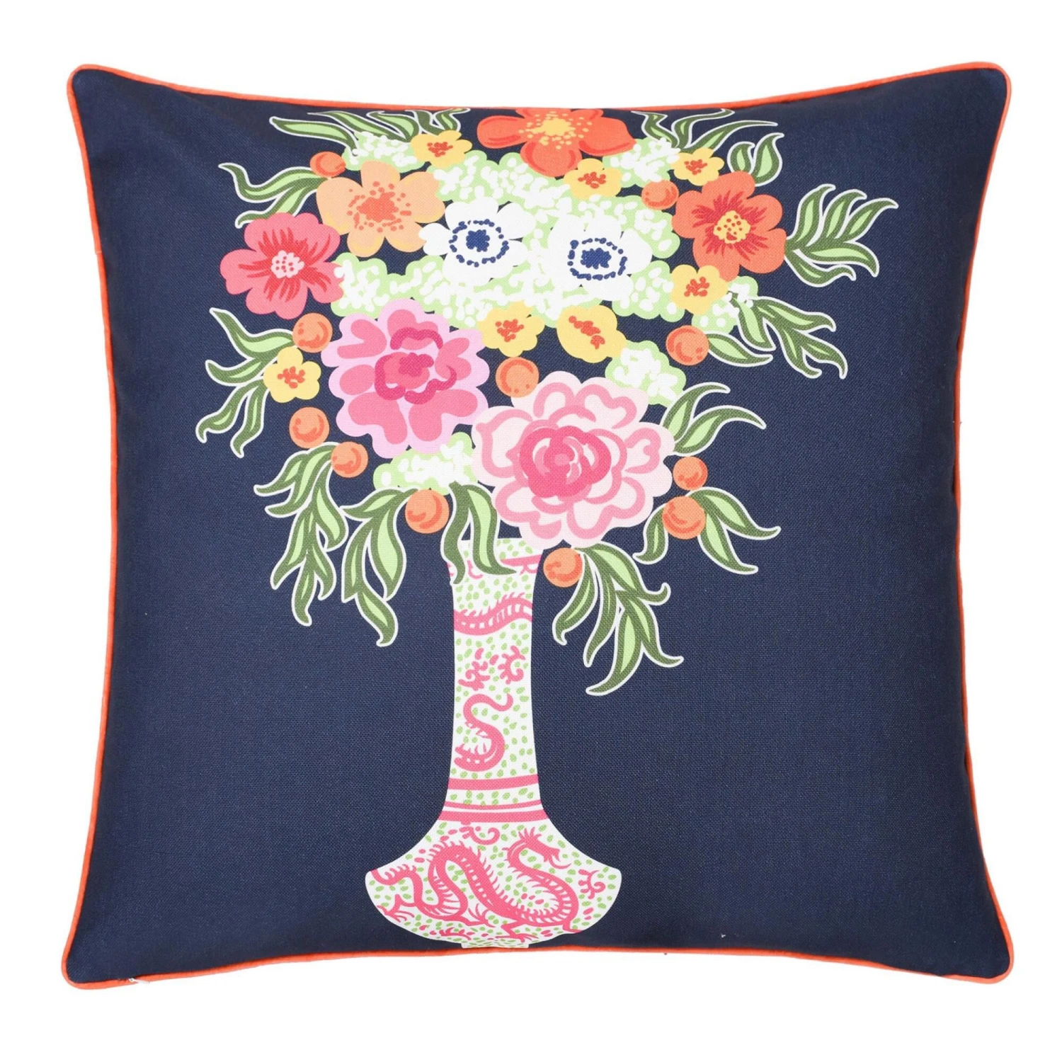 Two unique patterns with vibrant color tones alternate on each side – bringing to life a modern, eclectic, and unique home accent. Orange velvet trim detailing is added for an elevated look.