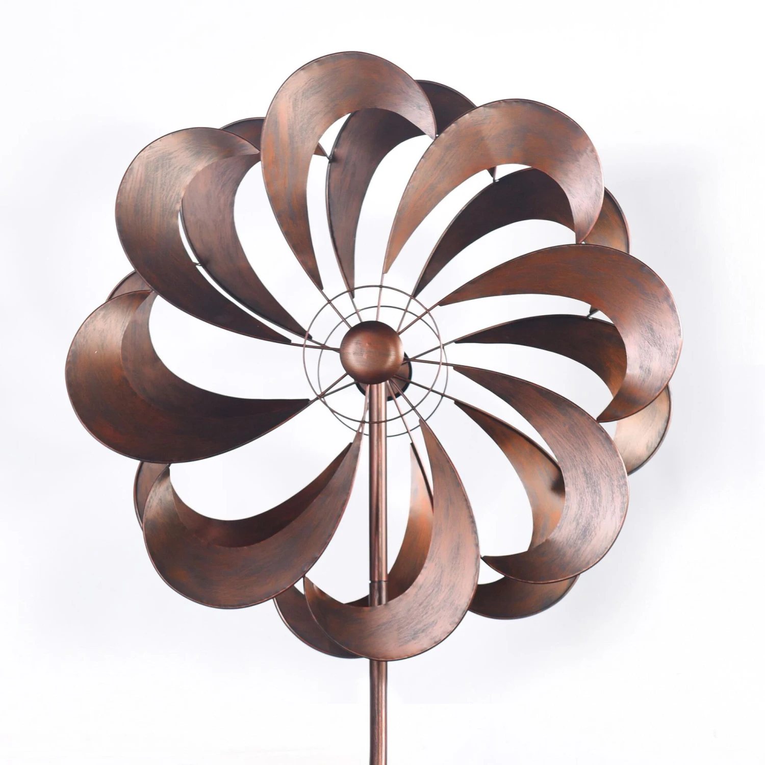 The Estate Windcatcher adds a grand touch to your yard with it’s length and unique design. The floral windmill design is made with laser cut steel and finished in a patina/copper to compliment the outdoors. This piece will catch people’s attention with it’s size but blend beautifully with nature. Due to the production process, there may be minor variations in shape, size, color, and finish.Features – The Estate Windcatcher adds a grand touch to your yard with it’s length and unique design.The floral windmill design is made with laser cut steel and finished in a patina/copper to compliment the outdoors.This piece will catch people’s attention with it’s size but blend beautifully with nature.Due to the production process, there may be minor variations in shape, size, color, and finish.Specifications – Location Rating – Indoor/Outdoor