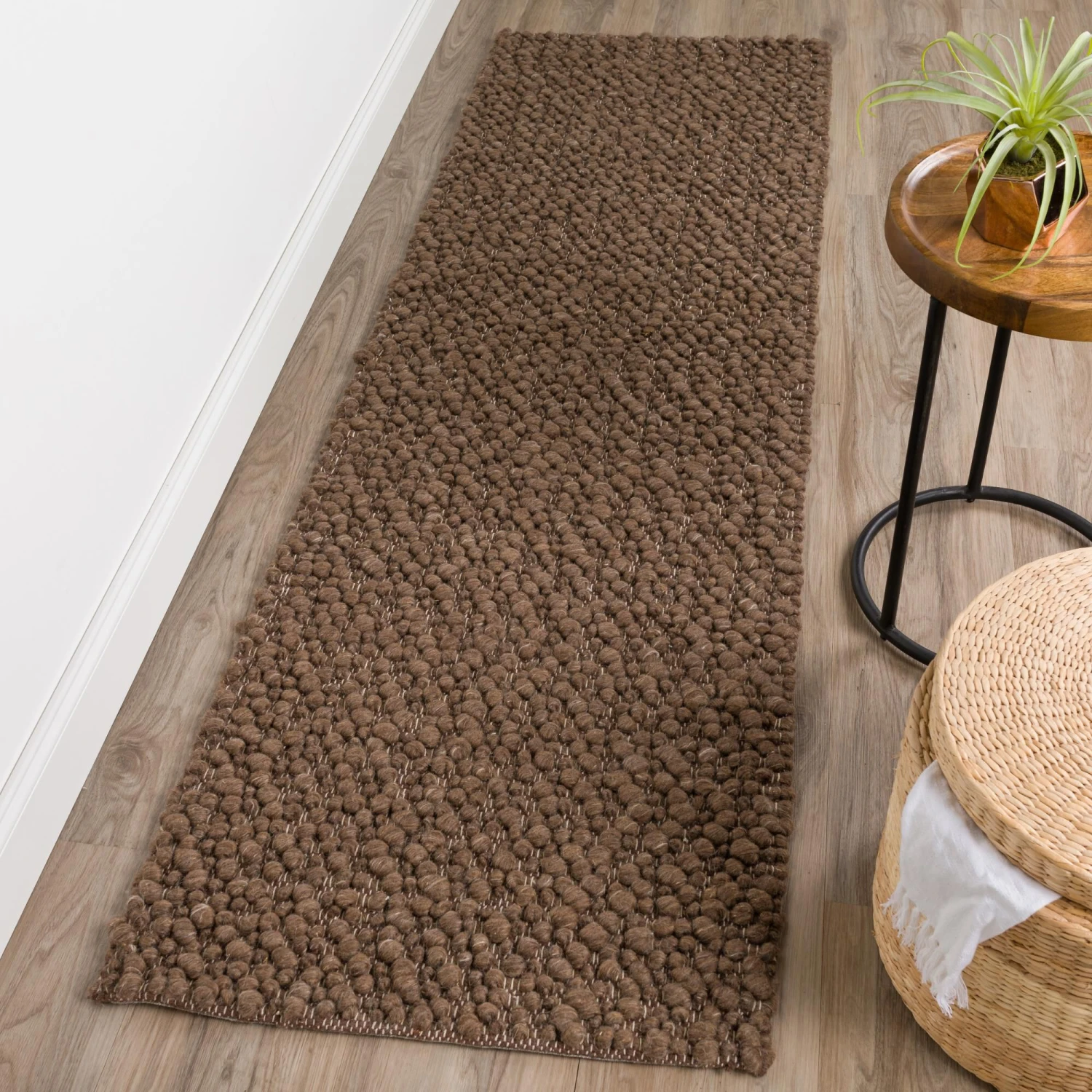 The Gorbea Collection is made from chunky wool slub yarn. These incredible rugs are soft to the touch with a thick loop pile thats perfect for any space. Vacuum rugs regularly. Never use a beater bar on a wool or shag rug. Set the vacuum height gauge to its highest setting, as some powerful vacuums may damage the pile, bound edges or corners of your rug. Do not pull loose yarns; trim with scissors. It is normal for new rugs to shed fibers, especially wool rugs and hand tufted rugs. Frequent vacuuming will aid in eliminating excess loose fibers. The shedding will diminish with regular wear and vacuuming. Blot spills immediately. Professional rug dry cleaning only. Cotton Canvas backing.