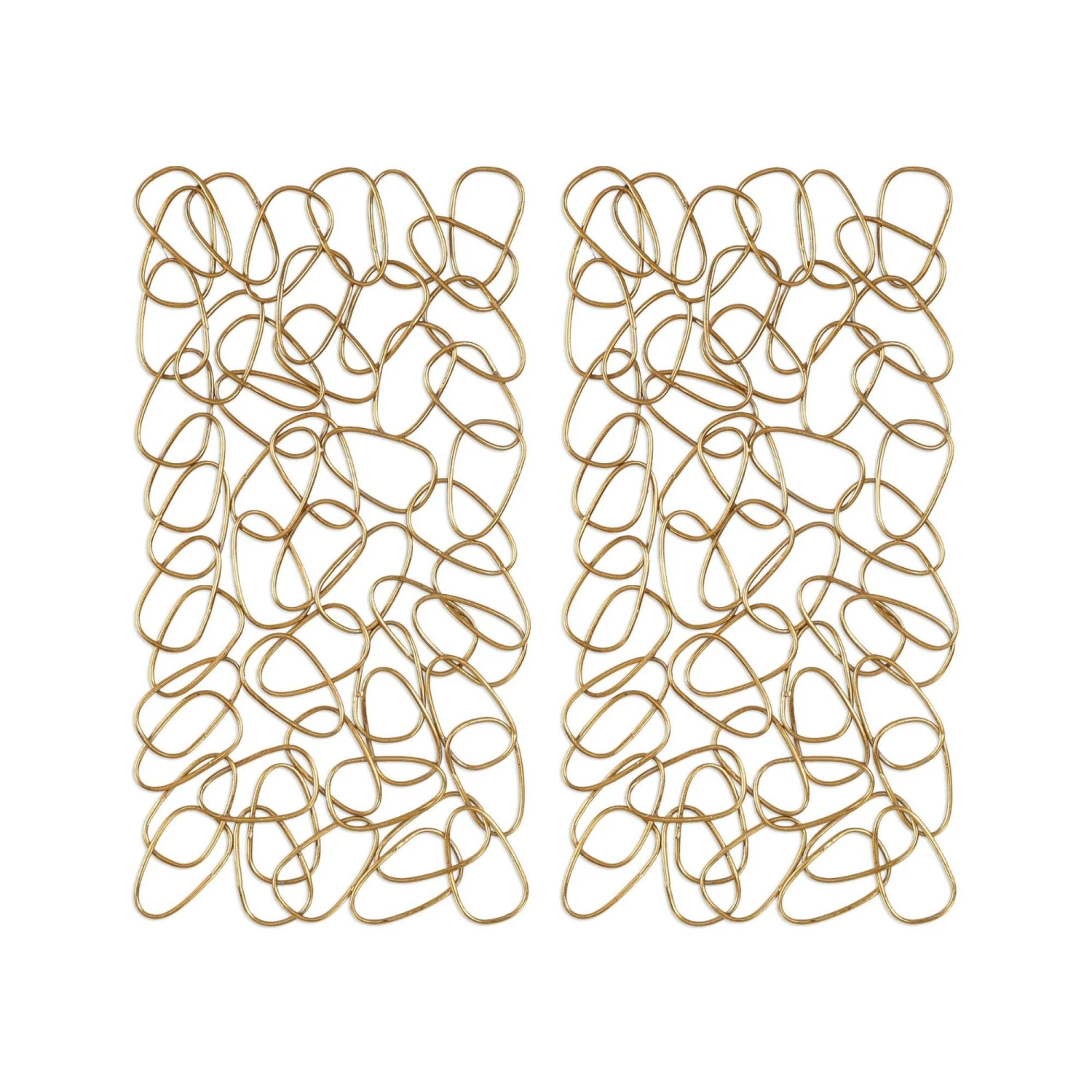 Panels Of Individually Pieced Loops Of Hand Forged Iron With A Soft Gold Silver Leaf Finish. Due To The Handcrafted Technique, Each Piece May Vary Slightly.. Set of two.