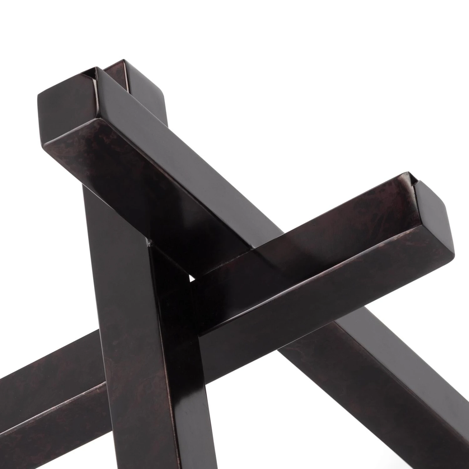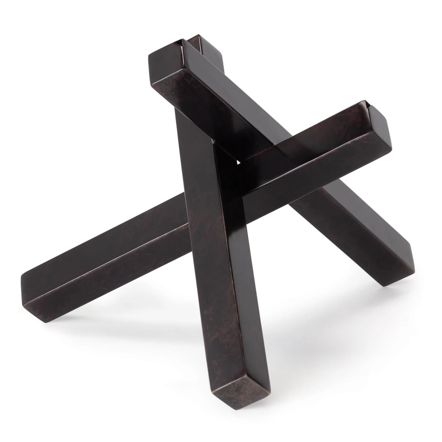 An elegant form of balance and depth, the Intersecting sculptures patina finish gives it an industrial vibe. Place this decorative accessory on a bookshelf, etagere, coffee or side table as a sculptural statement piece.