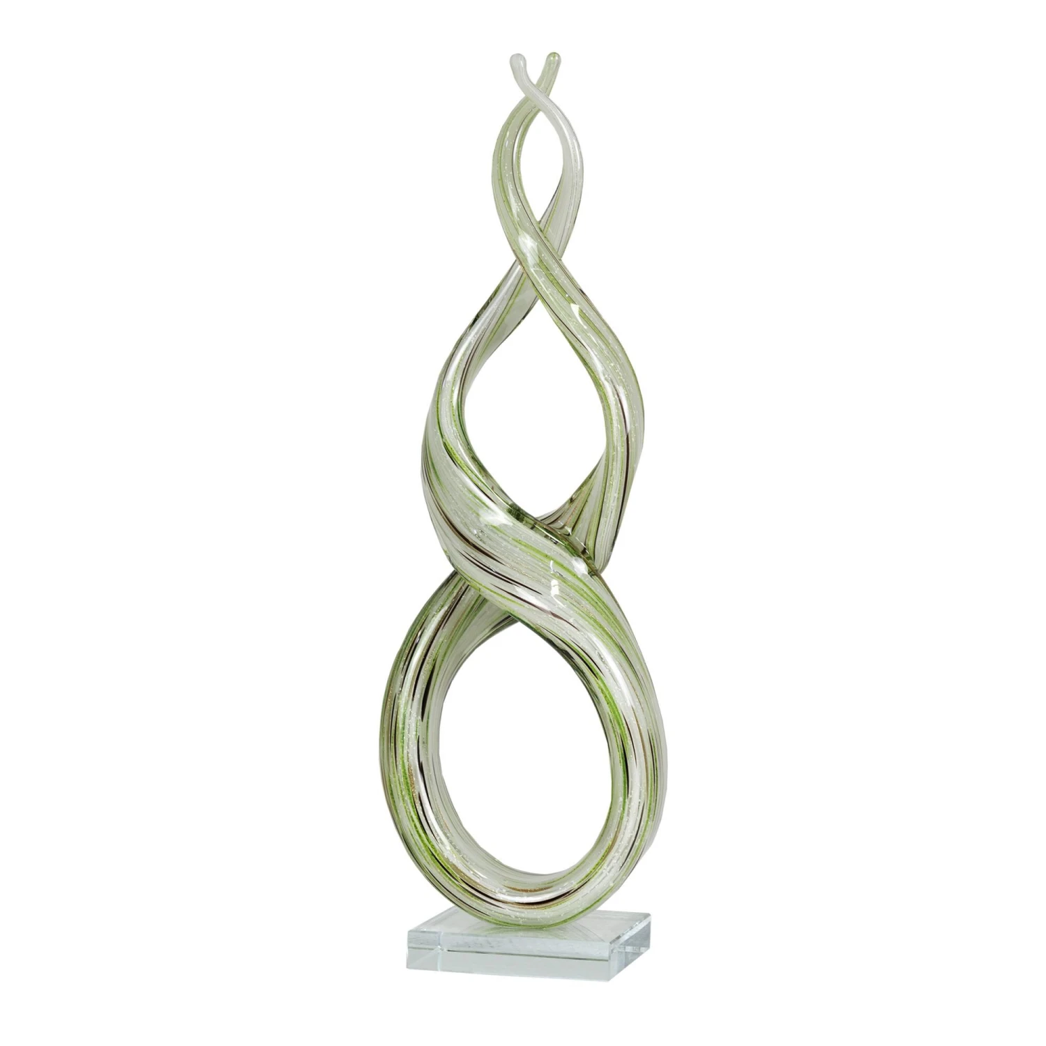 Our mesmerizing Intertwined Handcrafted Art Glass Sculpture is the perfect finishing touch to any rooms dcor. The generously sized statue features a glass tube that has been stretched and twisted into an abstract interwoven design. Clear glass is infused with silver, black, and white splashes for a frosty monochromatic look. The sculpture is handcrafted of Favrile art glass. The handcrafted nature of art glass can cause slight variations in colors, sizes and patterns, so that no 2 pieces are exactly alike. A definite focal point in any room, our Intertwined Handcrafted Art Glass Sculpture makes wonderful gift for any occasion. NOTE: Due to the nature of handmade art glass, colors, sizes and patterns may vary slightly.