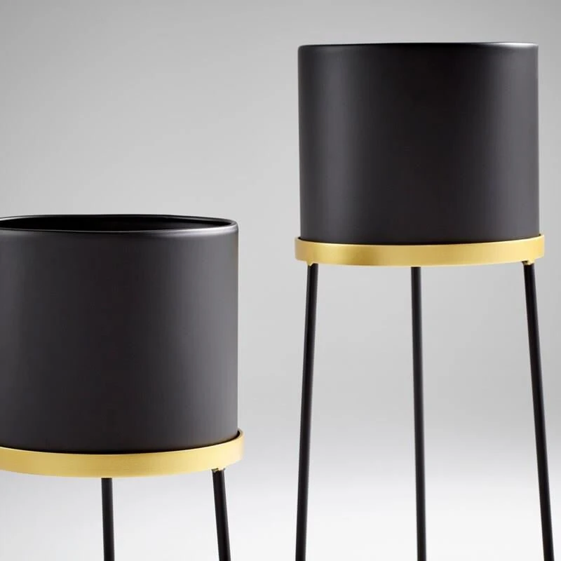 Display your flora in style with the Liza decorative planter. Incorporating plant and floral elements into your space will liven up your mood as much as your decor. This simple yet elegant planter provides a stunning vessel to store and nurture your greenery. Boasting a rounded black planter nestled into a golden stand with a circular base, this accent is great for your commercial design projects and your residential styling needs!