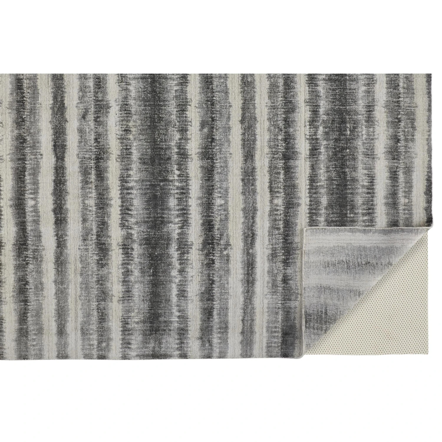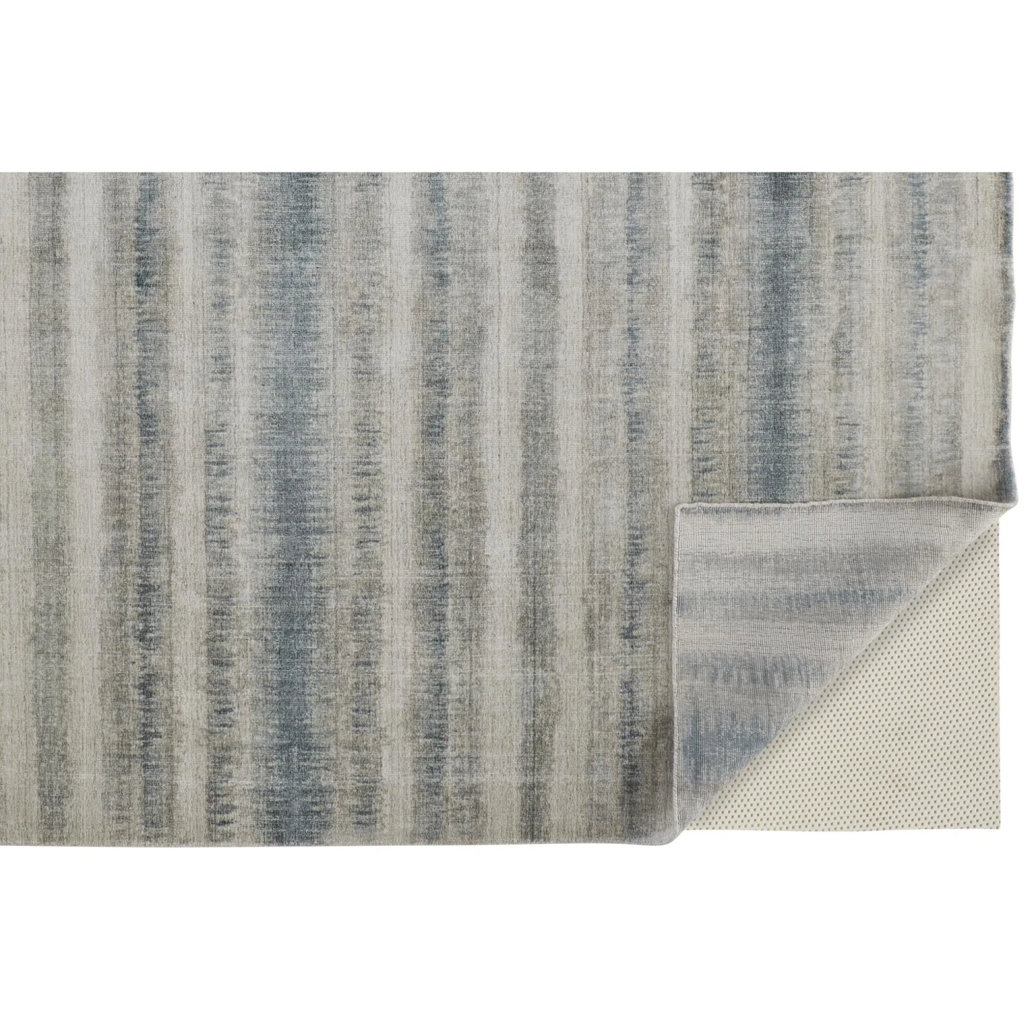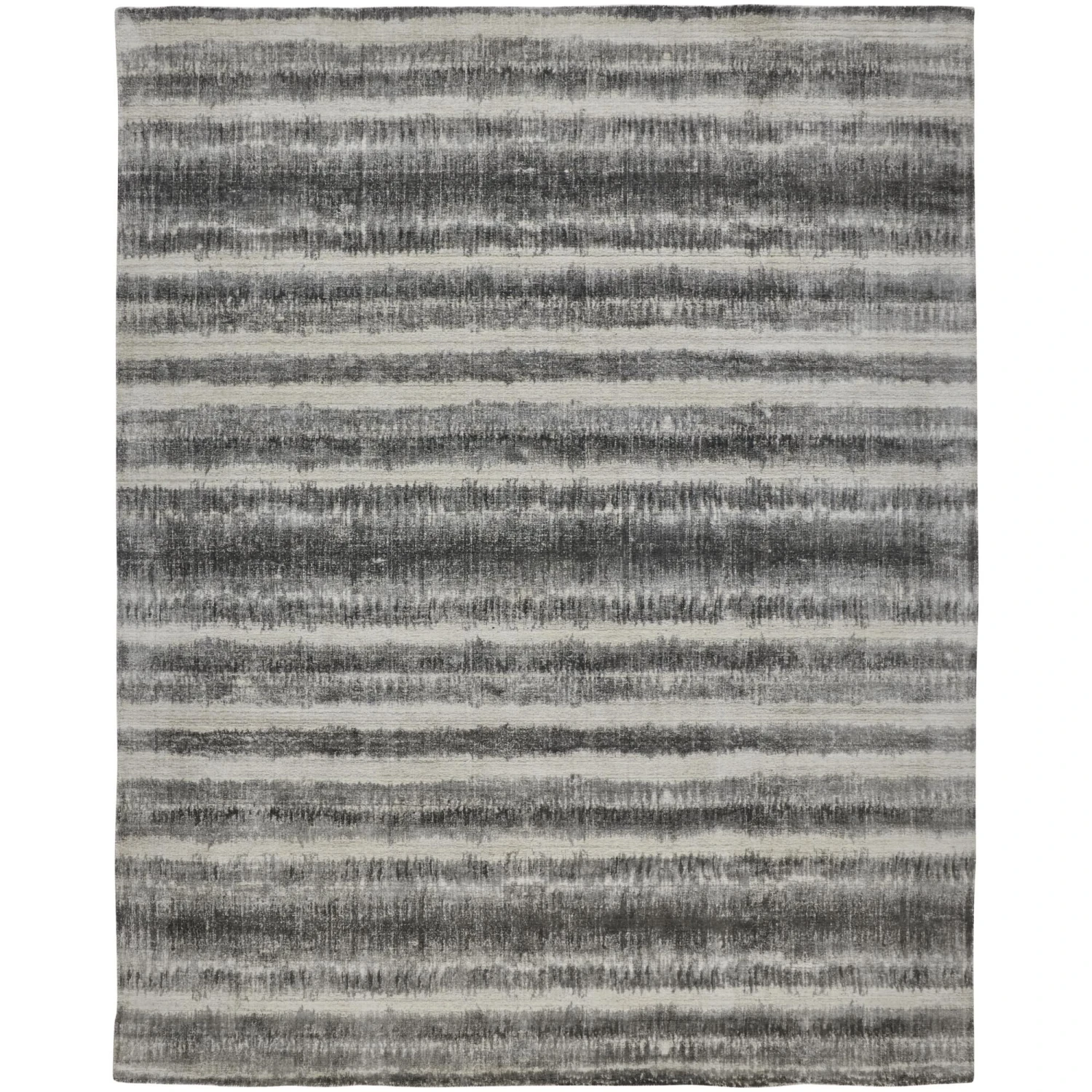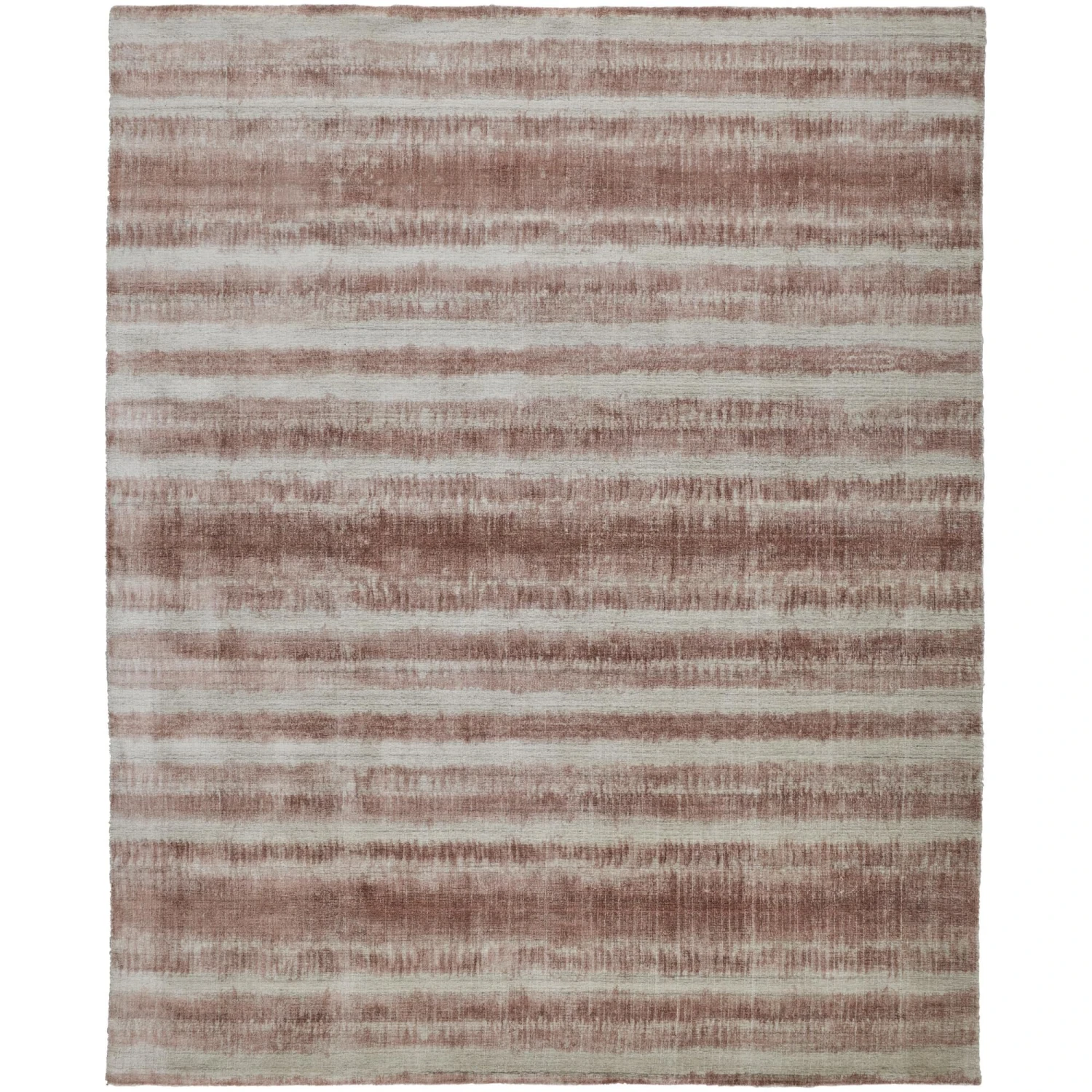 The Feizy Mackay collection is hand woven out of viscose and wool. Made in India, the Mackay has a low pile texture that brings a luxurious sheen and effortless style to any modern space. Instead of being sheared like tufted rugs, woven rug piles are maintained to create an embroidery like texture. Either produced on a hand operated loom, or woven by hand, this method is like hand tufting, but the yarn loops stay intact. The pattern is an artful spin on the classic stripe.