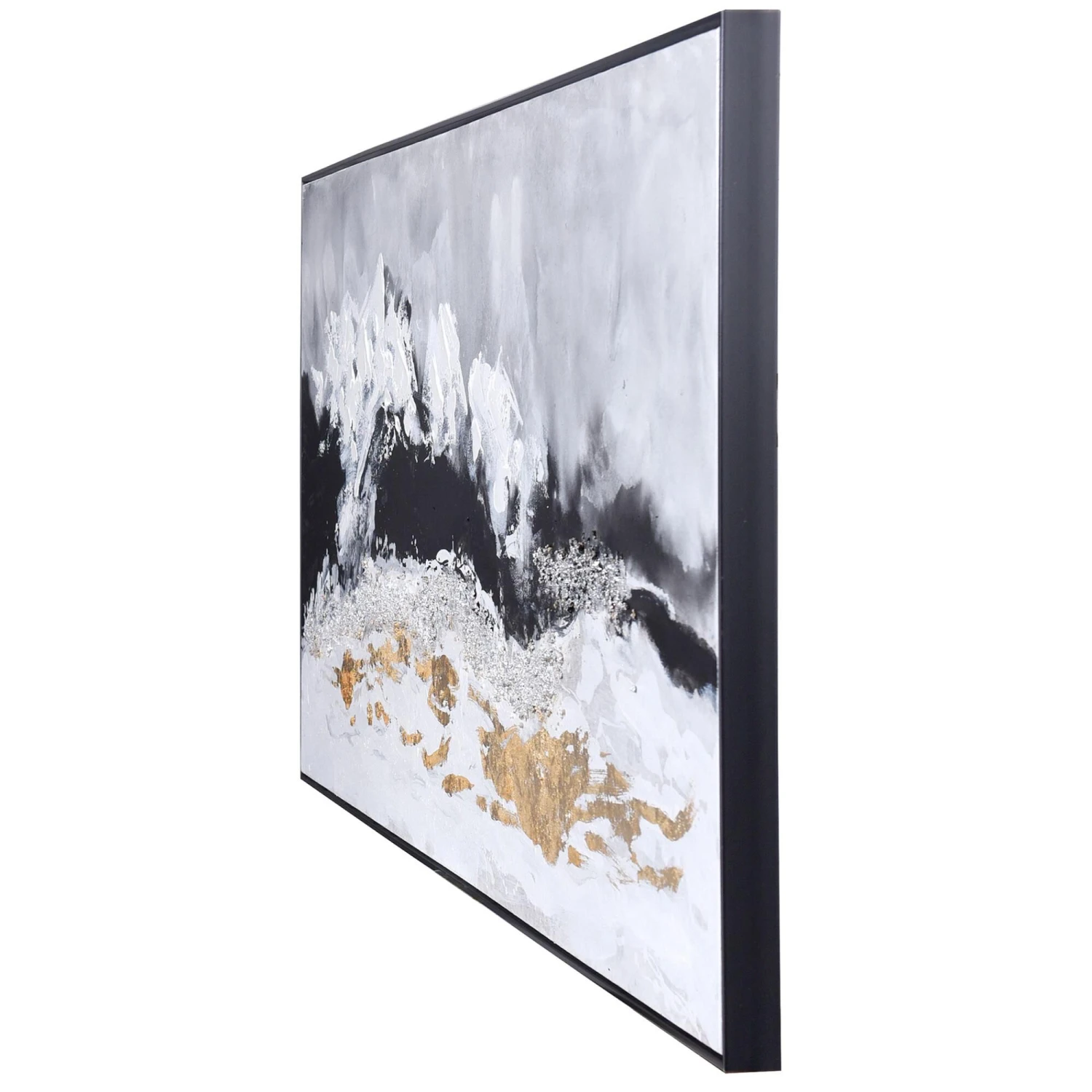 The Metallic Mountain Range Framed Canvas Art by StyleCraft is an abstracted landscape artwork that is sure to transform the space its in. Hand painted in monochromatic shades and accented with gold foil and silver, this distinctive painting represents elevated style. Install this canvas art above the console table or sofa in the living room or in the bedroom for a polished appeal.FeaturesDue to the production process, each piece is unique and no two are exactly alike.This metallic mountain range abstract is created with its neutral palette and gold foil accents to be a beautiful contemporary piece.This piece is 100% hand painted with acrylic paint and gold foil that adds depth and texture to this piece.