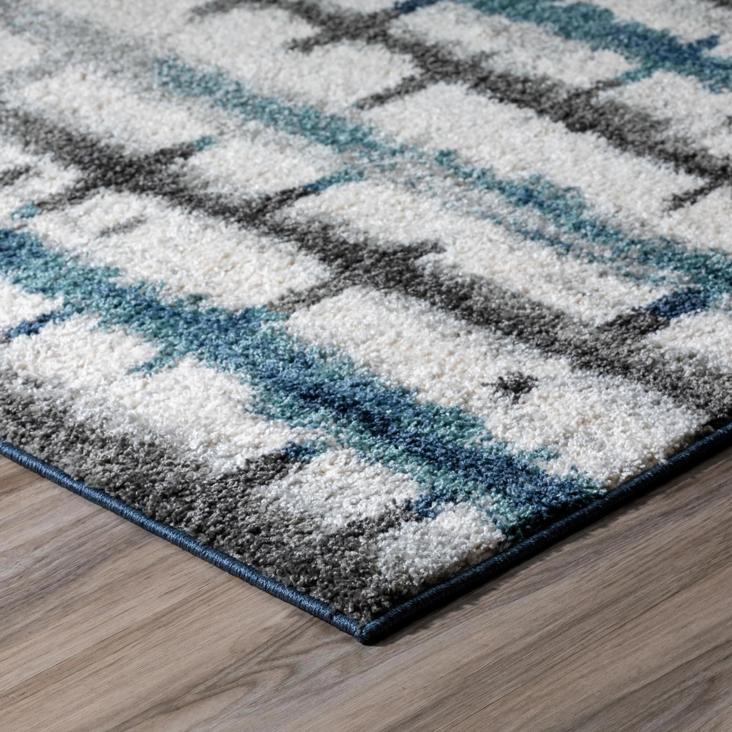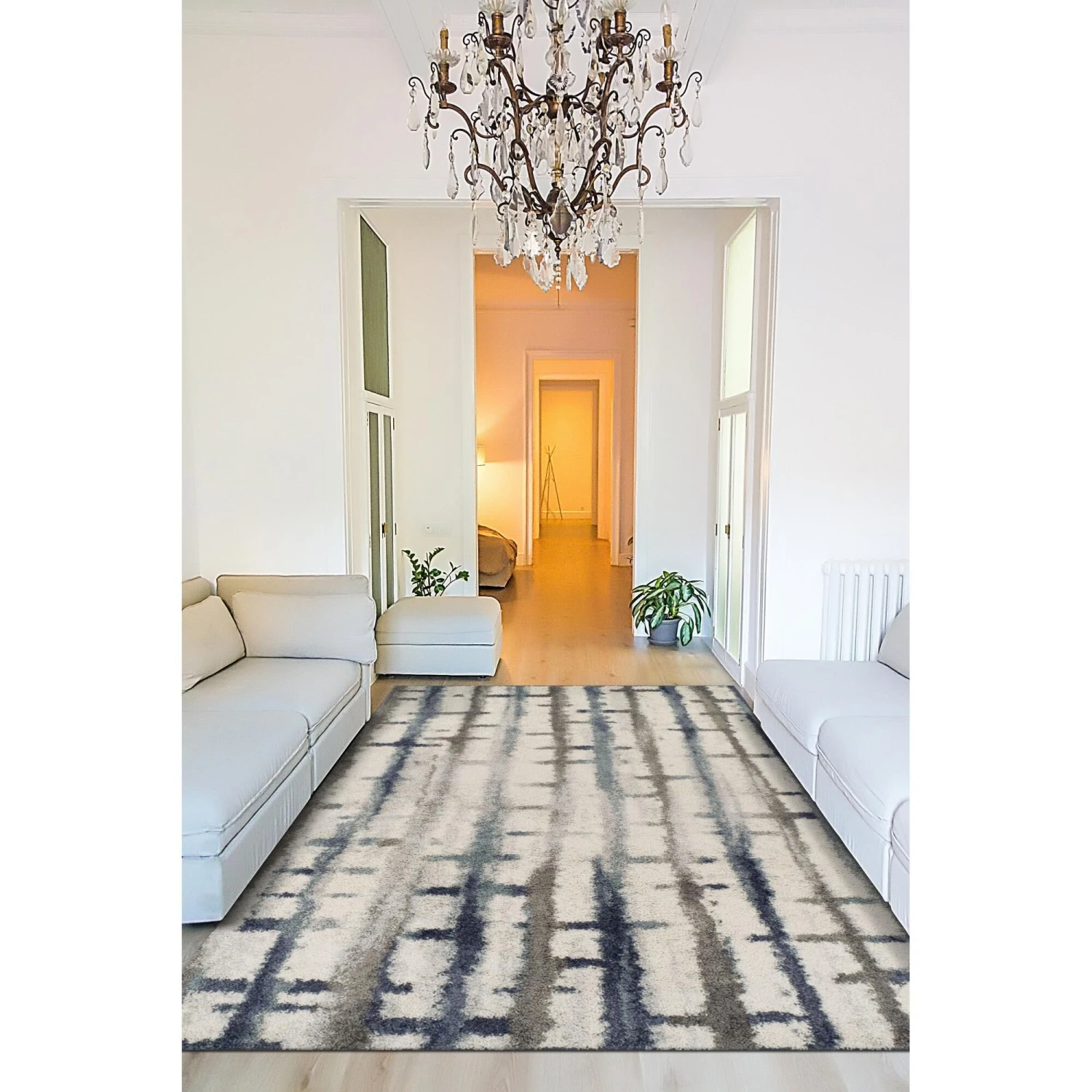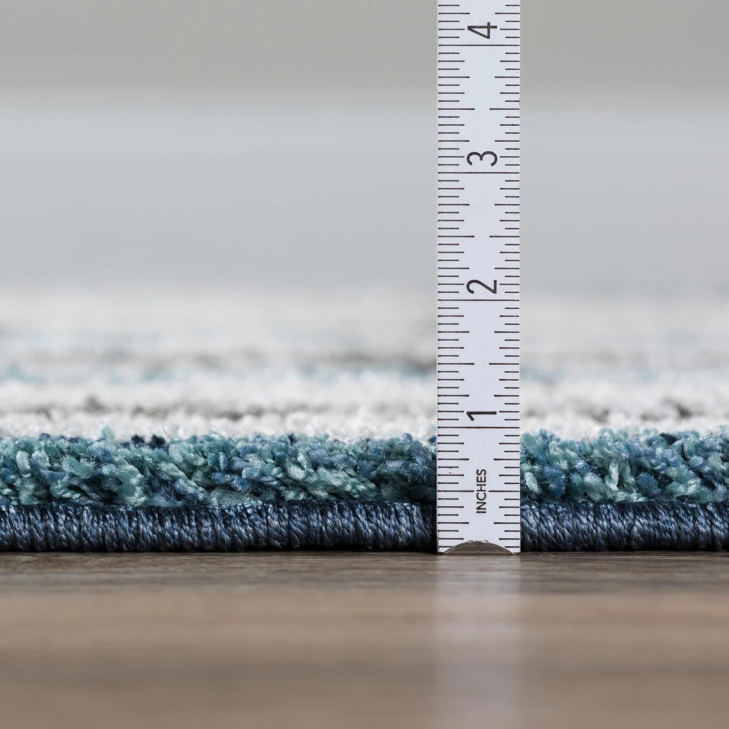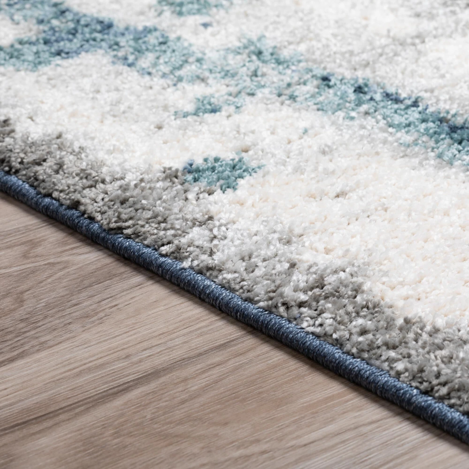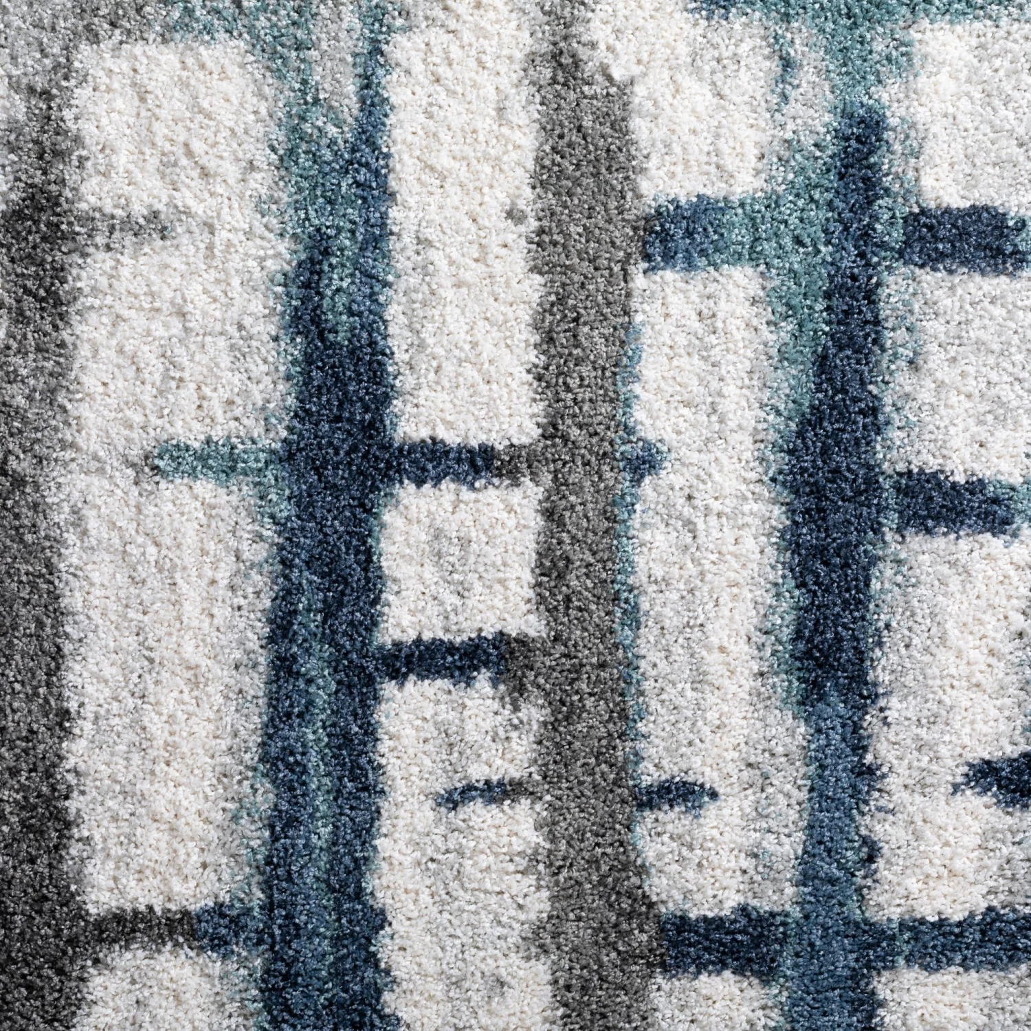 Rocco features transitional designs with shades of greys, taupes and blues. Incredibly soft touch with an overall casual feel make this rug a sure bet. Vacuum regularly with straight suction vacuum. Never use a beater bar vacuum on a shag rug. Spot clean with mild soap and water. Never pull loose rug yarns; always trim with scissors. Canvas backing.