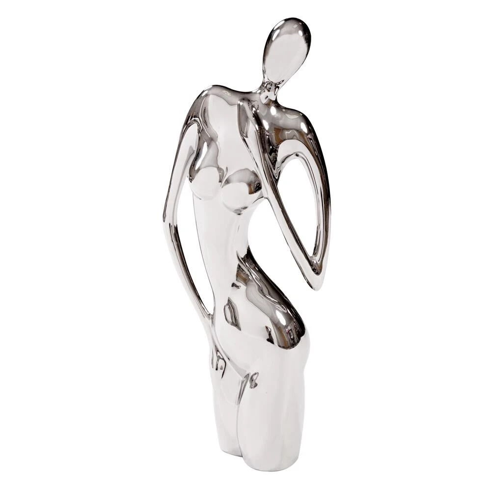 Strike a pose! This figure is fashioned from ceramic into an elegant posing female shape. It is then finished in an electroplated nickel so metallic, it has a mirrored effect. Alone or in multiples this statue will look great in any room. Console tables, book shelves, pedestals or any other place that an accent is needed, are the perfect places for this piece. Pair with the other figure to complete your look.