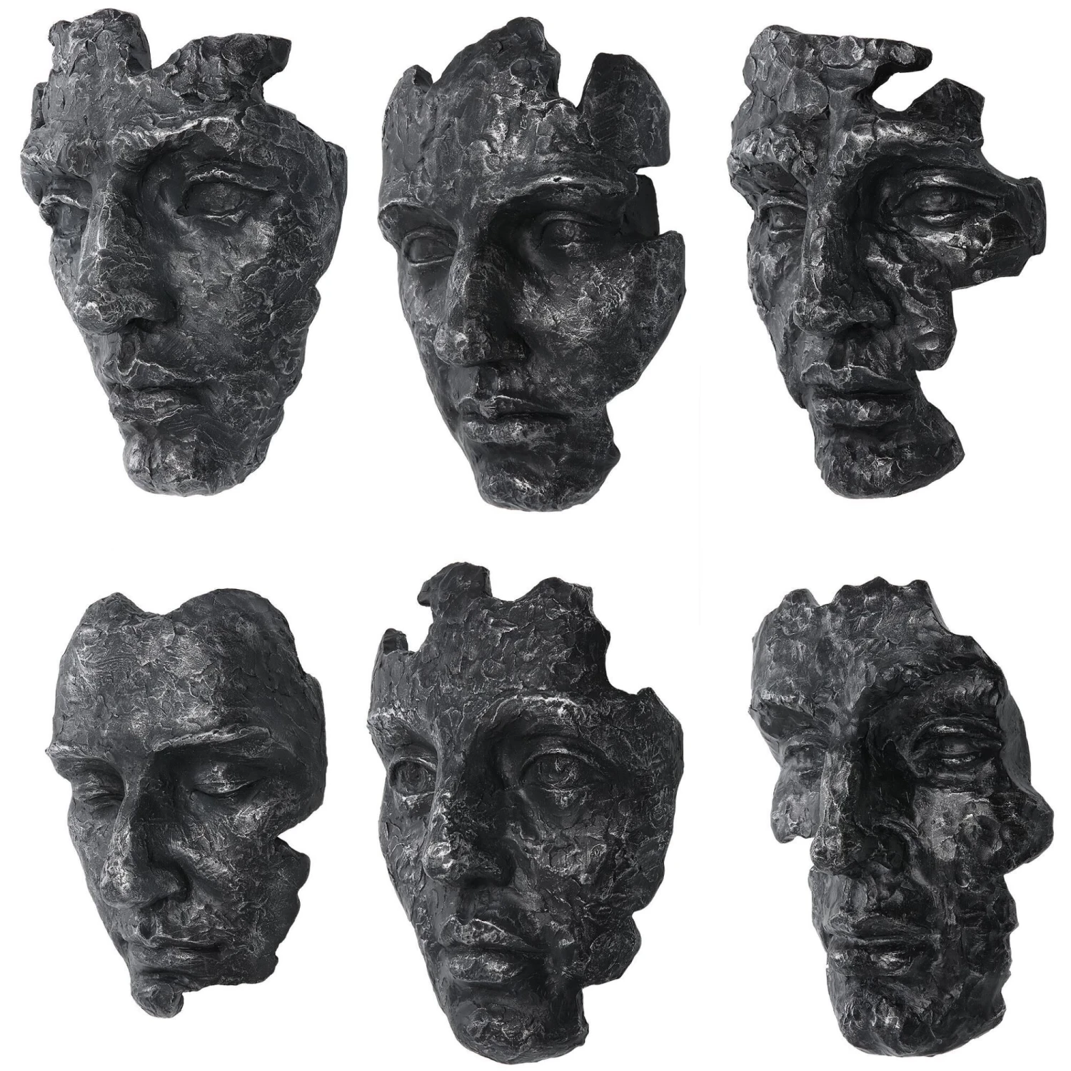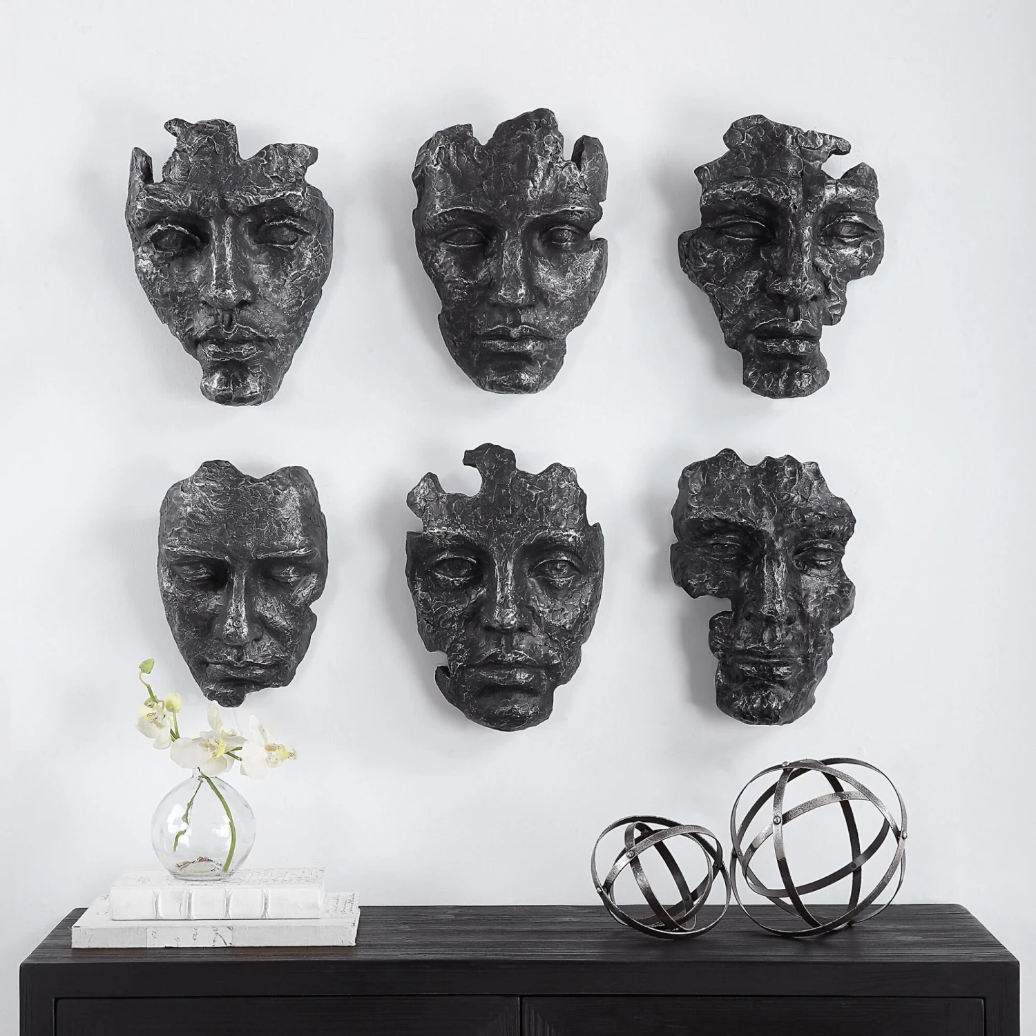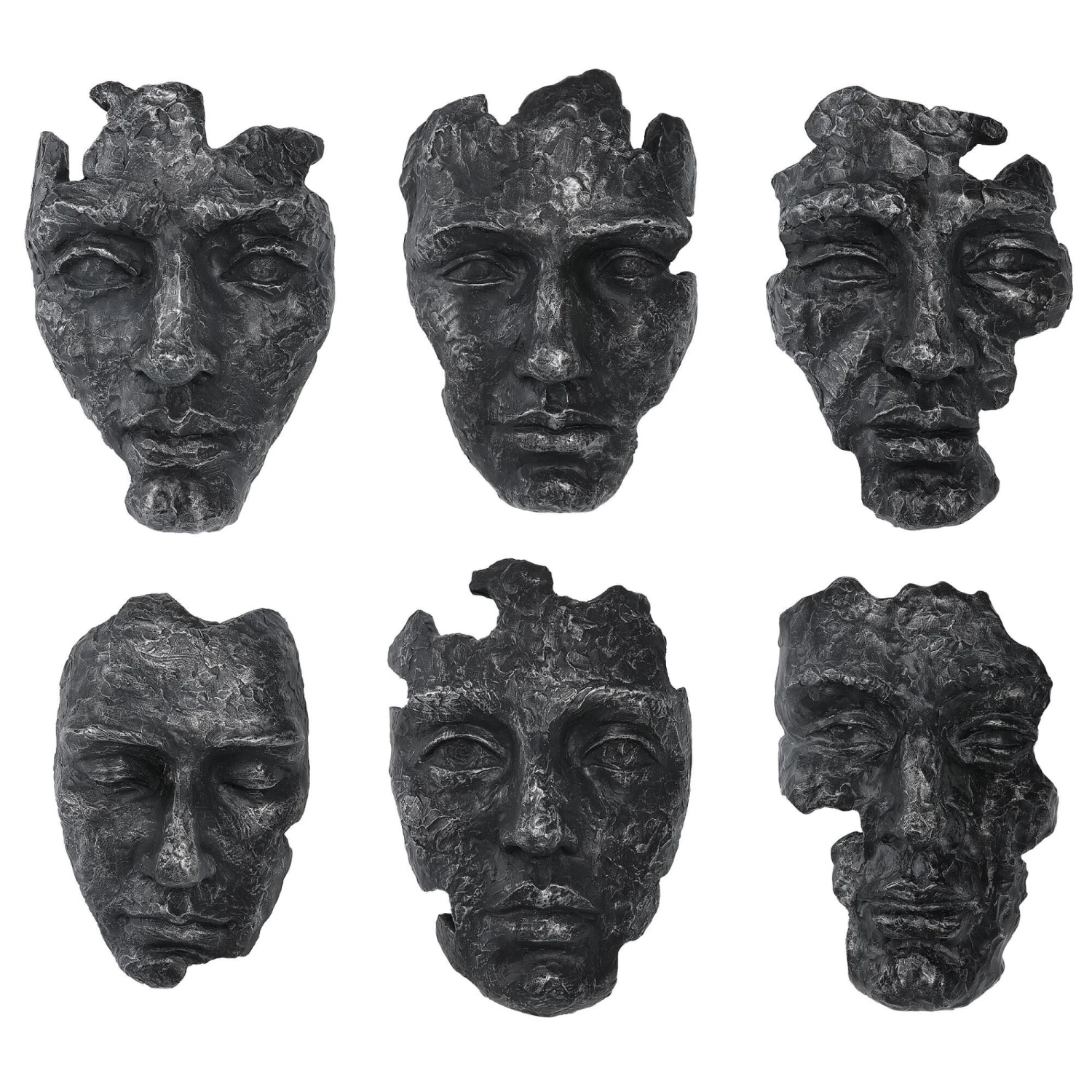 Inspired By Works From Modern Art Galleries, These Masks Are Handcrafted With A Sculpted Look In A Patinated Steel Gray Finish With Noticeable Metallic Details And Texture.